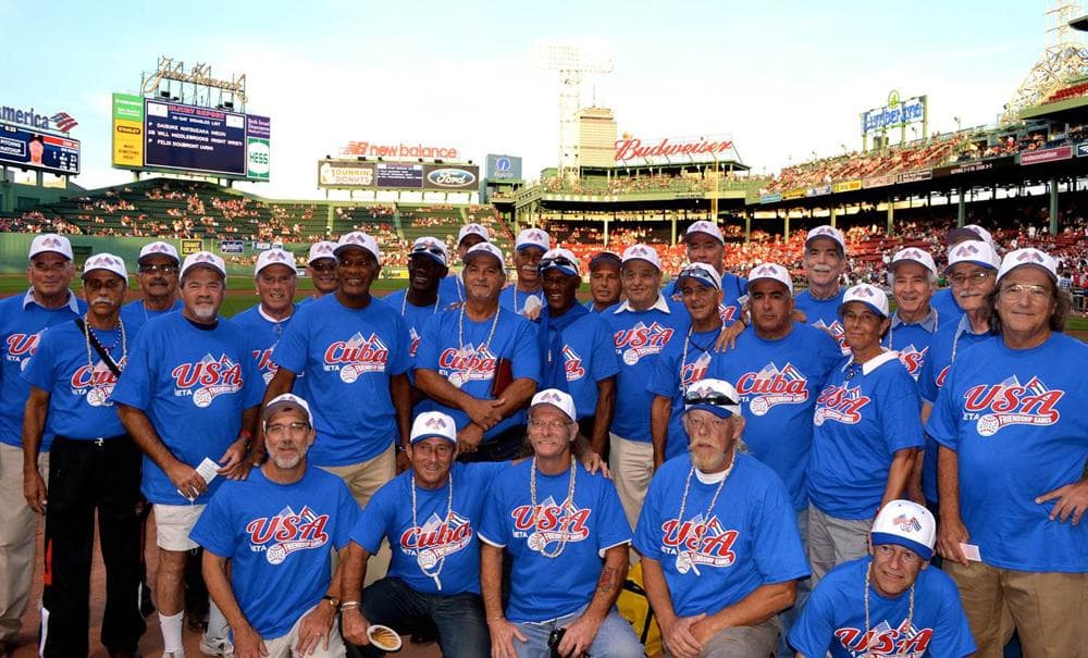 On Saturday night, both teams both got a taste of the Major League limelight at Fenway Park. With his Cuban teammates and American friends behind him, 74-year-old shortstop Tony Gonzales threw out a ceremonial first pitch. As the local championship teams like to do, the softball squads also took a Boston Duck Tour.