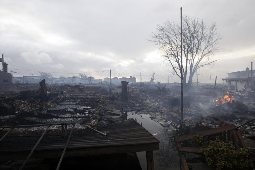 In Queens, nearly 200 firefighters tried to contain an enormous blaze that consumed more than 80 homes in the Breezy Point neighborhood. They had to use a boat to make rescues and climbed an awning to reach about 25 trapped people, fire officials said.