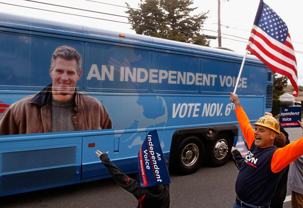 As Brown stepped outside to get onto his tour bus, people crowded around him. It was almost as if they did not want him to leave. Then, it was on to Fall River and Taunton, where another enthusiastic crowd awaited. Brown tried to set up a contrast between him and Warren.
