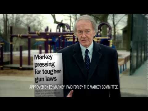 The ad then cuts to a newspaper headline from the elementary school massacre in Newtown, Conn., and says Markey has been willing to stand up to the NRA and fight for gun control measures such as a ban on Chinese exports of assault weapons to the U.S.
