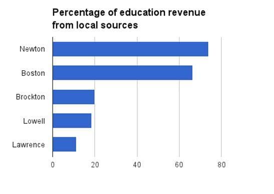 The census data show that some 82 percent of Massachusetts' education revenue came from state and local sources in fiscal year 2011.