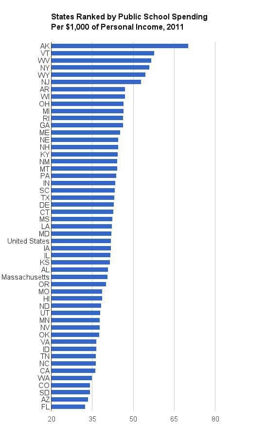 New census data suggest Massachusetts is punching below its weight when it comes to education spending.