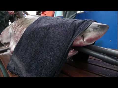 Chris Fischer: We have a special lift on our ship that really does make the impossible possible, and we have a group of world-class fishermen who capture the shark and get it into the lift while it's underwater. And then, at that moment when the shark comes out of the water, we have 15 minutes where we put hoses in its mouth to keep water on its gills, we cover its eyes, and then the scientists and the crew go about together executing between 10 and 12 research projects.