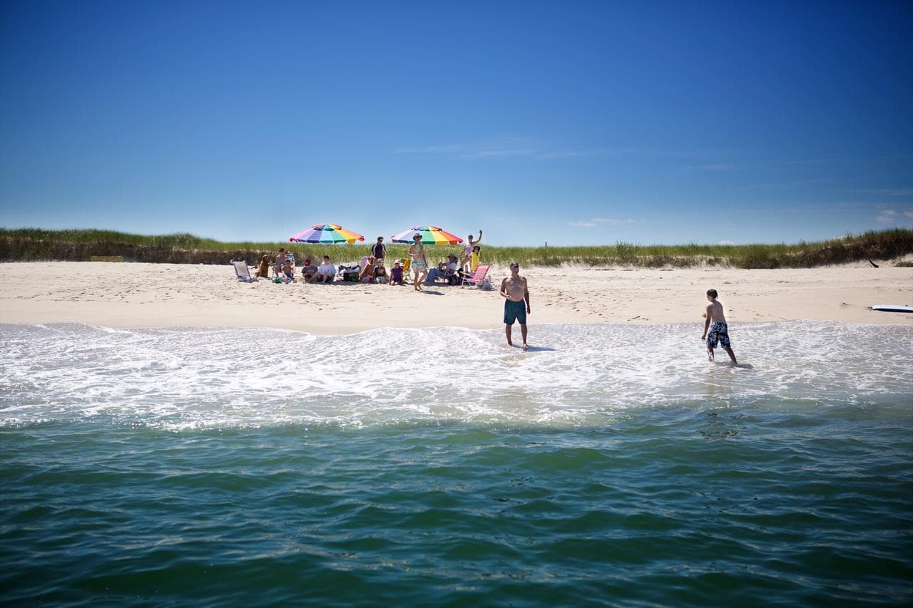 By mid-afternoon we've spotted no sharks from the ship. So the OCEARCH crew takes us on a smaller boat to see some of the gray seals on Monomoy. To Greg Skomal's disbelief, we discover a group of people on the beach, right where the copter saw a great white earlier.