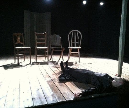 The story hasn’t changed. Friends and relatives gather for a little R&R at a lakeside country house. Fading actress Arkadina (played by Brenda Withers), and her new beau, Trigorin (Jonathan Fielding) along with friends Masha (Stacy Fischer) and Doctor Dorn (Lewis D. Wheeler) are subjected to a play by Arkadina’s volatile son, Konstantine (Alex Pollock, the only cast member not a part of the company.) Nina (Amanda Collins) plays muse to Konstantine, enacting his impenetrable composition with a seriousness that draws laughter from both audiences. Withers’ Arkadina both annoys and amuses with her blatant pretension, and yet it’s her unpredictability that engrosses us: She is viciously unaware of her effect on her son, and watching her flip between scorn and horrified guilt at the result of her actions provides some of the production’s strongest moments.