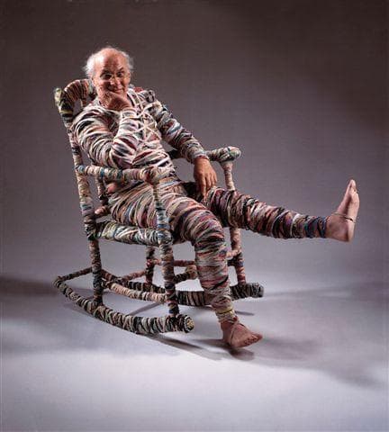 The pieces in the Fuller Craft’s new show are whimsical and functional. There's a colorful, folding chair that doubles as a piece of art you can hang on the wall. And a mummified rocking chair wrapped in strips of cloth.