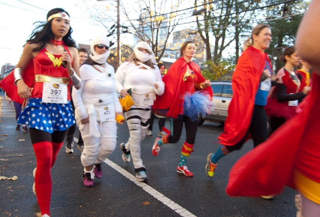 This, of course, is business as usual when you’ve got hundreds of Supermen, Batmen, Wonder Women, Teenage Mutant Ninja Turtles, Jokers, Sailor Moons and Spider-Men jogging along Albany Street and Massachusetts Avenue in the Have2Run Productions race. A portion of the proceeds goes to On the Rise, a Cambridge day program for homeless, abused and impoverished women.