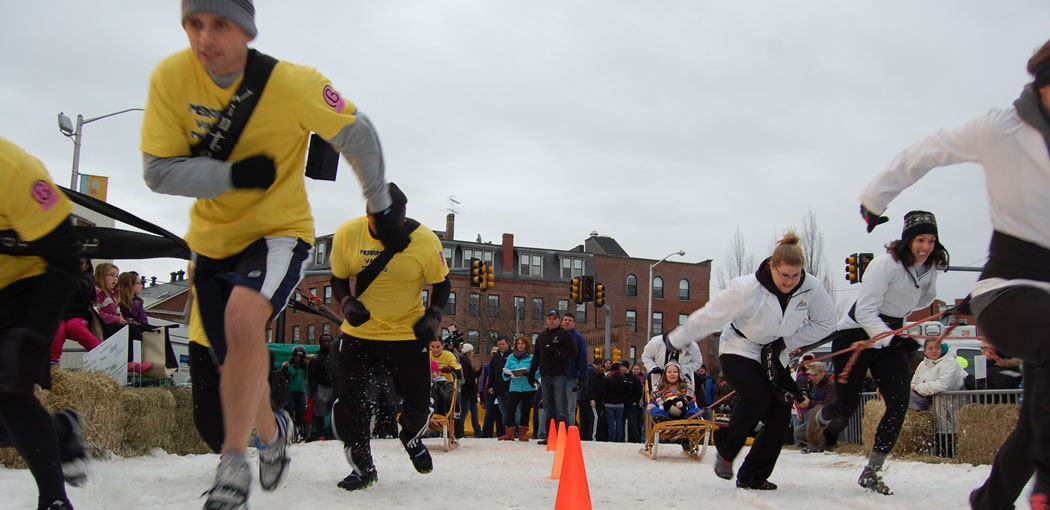 Lowell celebrates the season with an outdoor festival including food, music (this year’s lineup includes Sara Blacker and the Adam Ezra Group), and the “National Human Dogsled Competition” in which teams of people (costumed on Friday night) actually pull sleds in madcap but serious races down a snowy track set up near City Hall.