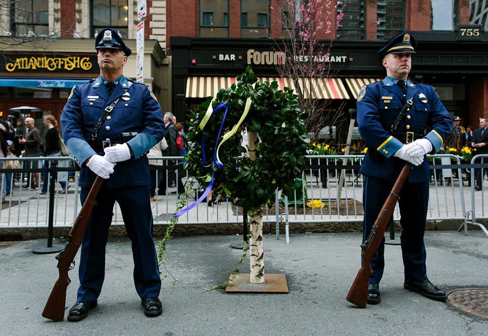 Update 10:30 a.m.: Earlier this morning, Boston Mayor Martin Walsh and Gov. Deval Patrick joined the families of those killed for a brief wreath laying ceremony at the site of each blast. Boston Cardinal Sean O'Malley led the ceremony.