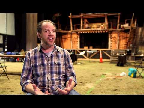 The set is a strange one. Don’t go expecting the lush playground of “The Heart of Robin Hood.” This looks more like a steampunked showboat with the band on the upper tier, occasionally joined by Prospero and Ariel. The action takes place on the relatively bare stage below, as if it's the main attraction on the showboat.