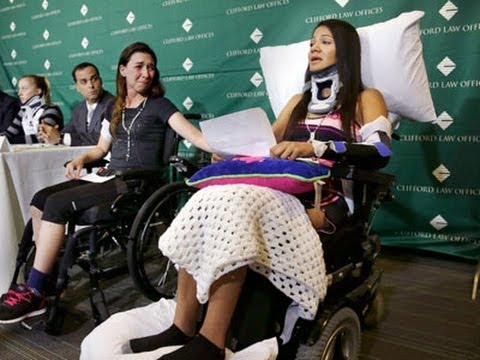 They declined to detail the extent of their individual injuries, but three of the four were in wheelchairs and wore neck braces. Their lawyers said the performers had, collectively, experienced about two dozen surgeries.