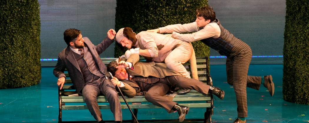 Jasperson plays the family dog Porthos in the new musical "Finding Neverland" at the American Repertory Theater. His costume isn't particularly elaborate, just a fuzzy body suit and a hat with ears. But Jasperson has fully embraced the role, from his growls to his canine gait.