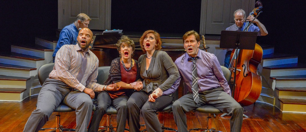 I’ve long thought that Leigh Barrett is the best musical-theater singer in Boston and here she proves to be an excellent director as well (with help from assistant director and choreographer Ryan Began). It helps when all four performers are fine actors to boot — they relate to each other as if they can’t get enough of each other’s company (even when the characters have had too much of each other’s company). Each knows how to sell a song physically as well as vocally, particularly the always-delightful Kathy St. George.