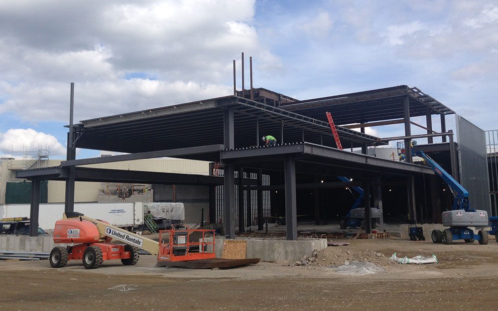 Construction of the Plainridge Park Casino in Plainville (Bruce Gellerman/WBUR)