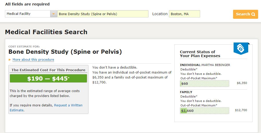 3.) Prices seem to change frequently. The first time I shopped for a bone density test at Blue Cross, the low price was $120. Five days later it had gone up to $190.