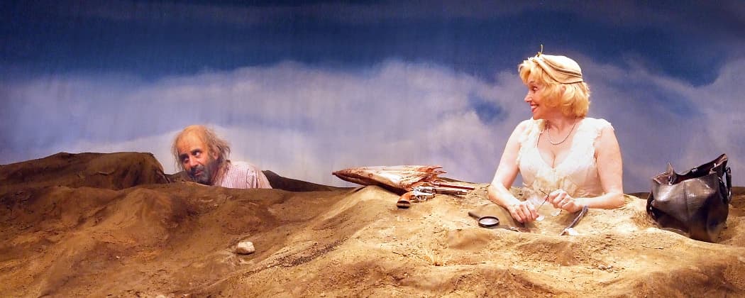 The tunefulness becomes more evident in Act 2, when more plangent notes intrude upon the play’s perky, if existentially bleak, melody. Here Winnie, deprived of every crutch but her fraying reason and a conditioned belief in some undefined “great mercies,” gets more plaintive, occasionally even petulant, without surrendering her determined optimism, her romantic ego, her sometimes sardonic wit.