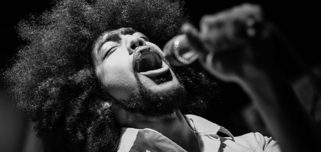In performance, Kazarian exudes a cool-guy vibe, wearing vivid shirts unbuttoned to his clavicle and a long, loose afro. (The band’s name is a whimsical reference to the mesmerizing movement of its lead singer’s hair.) In person, he is thoughtful, talkative, and unabashedly enthused, with a wide smile and a voice that projects. Even in conversation, his cadences are musical.