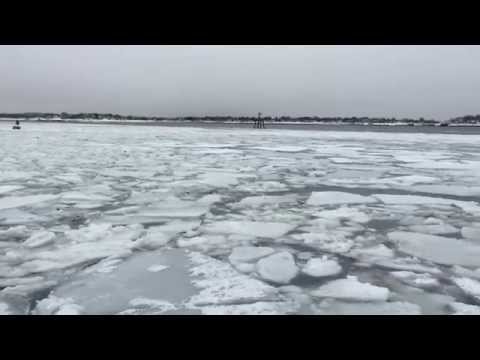 When ice floes freeze together the water becomes impassable — for an MBTA ferry or an oil tanker — and the Coast Guard has to come out to break it up again.