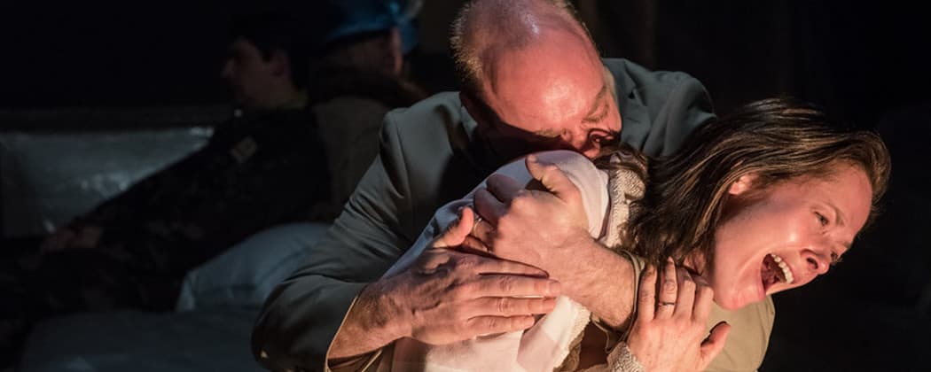 Cristina Todesco’s scenic design features plastic wrap draped over unfinished wall frames and swaddled about Mel’s exercise bike and Ted’s luggage. It’s instantly, viscerally effective shorthand for personal suffocation and familial dissolution. But the play is designed never to drag, and Derrah ensures that things keep flying along; Schwartz’s dialogue sparkles and lacerates by turn, and the set’s use of a separate rear space, observable through a long rectangular window, lends a cinematic quality to the staging. The set’s architecture makes it possible for Derrah to give us the live-theater version of a split-screen or a montage sequence. It’s clever staging suited to a piece of frightful, sharp writing. Catharsis for these people doesn’t come easily, but when it does arrive, it’s earned.