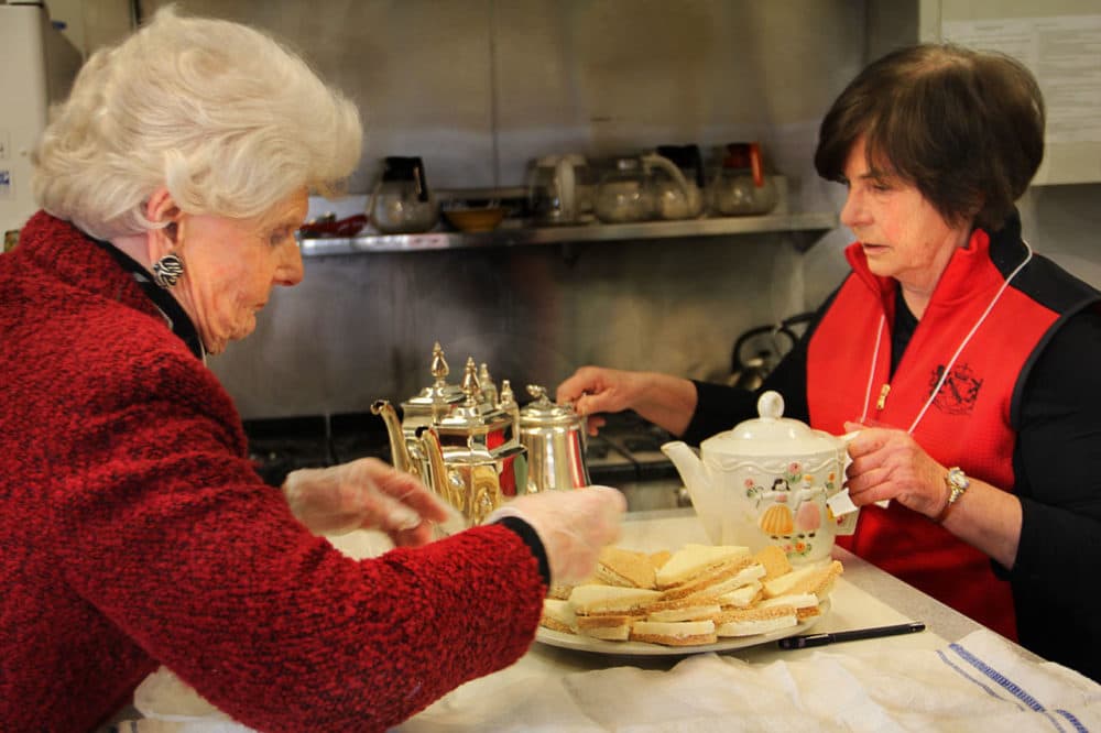 Another staple of Tuesday Club meetings that hasn't changed much is the tea service, with a sterling silver set. Although, tea time no longer requires the women to wear gloves and hats, it does involve an amazing spread — desserts of all kinds and traditional tea sandwiches.