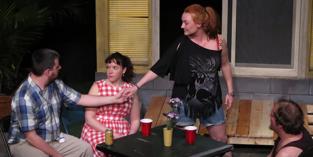Mary and Ben are a middle-class couple trying to play by the rules. Sharon and Kenny pay lip service to coloring between the lines, but you know it’s not going to take long for their self-admitted trailer-trash ways to come to the fore. This kind of civilization and its discontents theme is a tried and true one in late 20th and early 21st century theater and, for that matter, film.