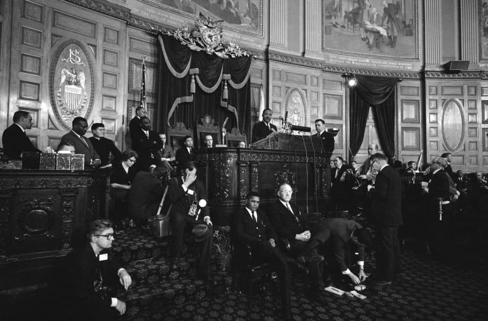 Dr. Martin Luther King Jr. speaks before the Massachusetts Legislature in Boston on April 22, 1965. (AP)