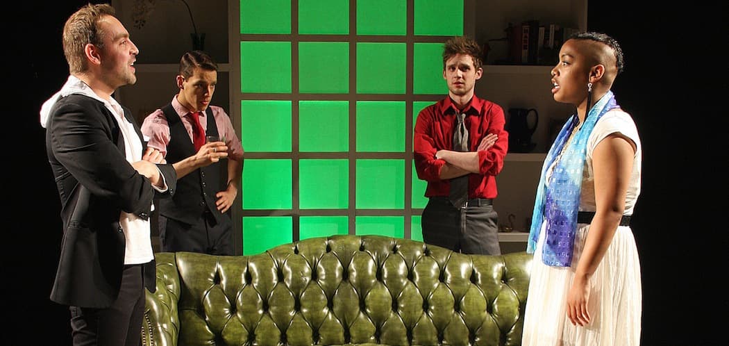 The heart of their growing dispute is whether Danny’s experience of hardship as a gay man can fairly be likened to hers as an African-American woman. He commits the logical fallacy—which itself is the very kernel of the so-called “men’s rights movement”—of failing to understand or even consider the preexisting, overriding dynamics of power that negotiate the space between their two social stations. (He boorishly cites Black History Month as an example of special treatment, without it occurring to him that the primacy of the white experience has otherwise been so readily assumed as to go unnoticed.) For her part, Emilie callously regards Danny’s gayness as a casual lifestyle choice with relevance only to the bedroom. She wields an anti-gay epithet with a seeming cloak of immunity conferred by her own minority status.