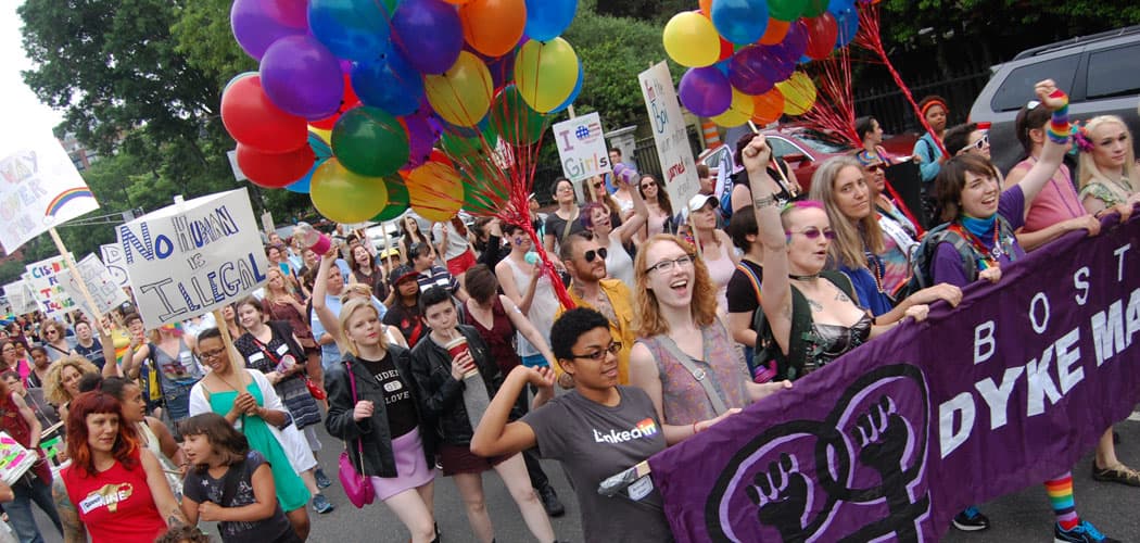 “The Boston Dyke March is for everyone,” the group’s website proclaims. “Lesbians, dykes, queers, bi-women, boychicks, tomboys, grrrls, lesbian moms, lesbianas, femmes, butches, trans women, androgs, trans men, gay girls, bois, womanists, fat dykes, sorority girls with pearls who are sleeping together, dykes on bikes, lesbian crones, African American lesbians, rural dykes, goddesses, genderqueers, poly girls, amazons, hippy chicks, lipstick lesbians, Asian dykes, lesbian avengers, dykes in wheelchairs, wise old lesbians, leather dykes, babydykes ... and you.”