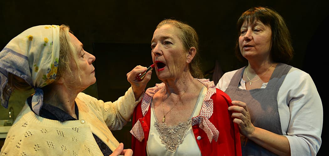 Enda Walsh takes a deserved place in that worthy company with this mesmeric double riff on Miss Havisham, in which first the nervous Clara and then the harder-nosed Breda are gotten up in slashes of clown makeup and flouncy period costumes to reenact, for the umpteenth times, their youthful, life-crushing experience at the New Electric Ballroom. Forcing them on is the numbed Ada, with hangdog Patsy reappearing like a dull penny. It is only toward the end that something else — something surreal, surprising and delightful — happens before what might be seen as sentimental fantasy disappears with the resurrected Roller.