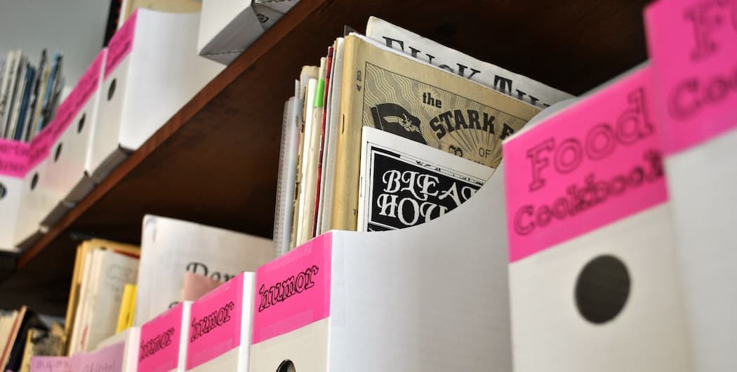 Papercut’s collection includes 15,000 zines, many of which are very old and quite rare. They’re also hardy, having survived the library’s largely nomadic existence. (Not to mention general circulation: All the zines can be taken out for free, just like a normal library.)