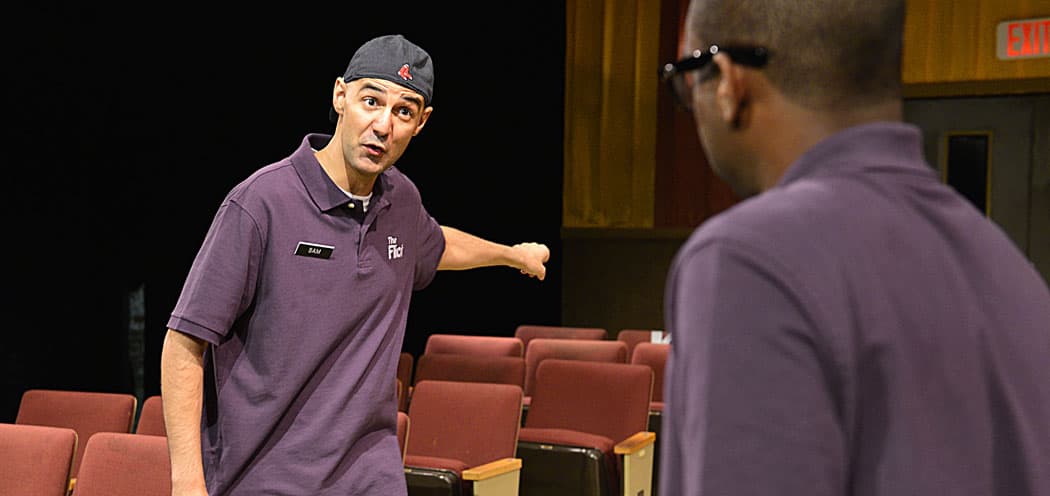 I admit that when I experienced the play for the first time, though I admired it immensely, I felt I would have gotten the idea if given half the wordless “walkthrough” — as the characters dub the endless loop of cleanup that punctuates the theater’s screenings. But seeing “The Flick” again, in Bridget Kathleen O’Leary’s heartfelt, oft-hilarious production by Gloucester Stage (through Sept. 12), I found myself less annoyed.