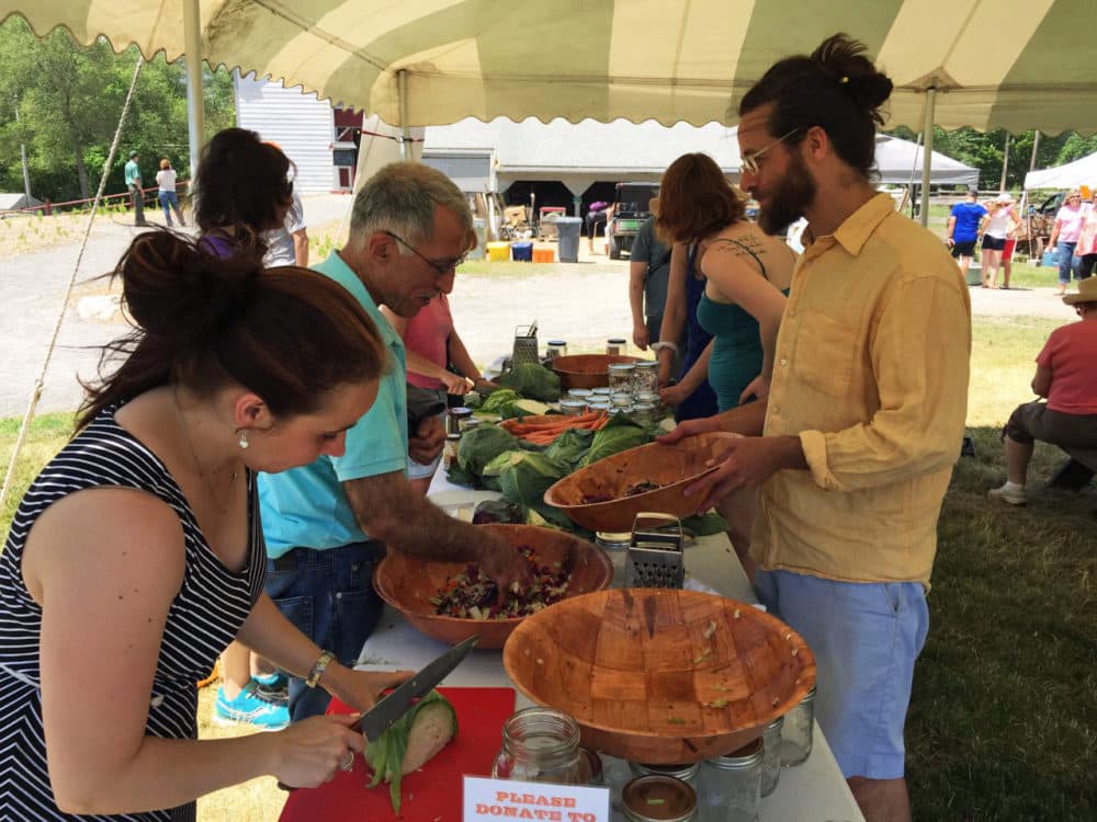 That’s why Ogusky calls these mass sauerkraut-making events kraut mobs. The one I went to was at Powisset Farm, a property run by the Trustees of Reservations in Dover.