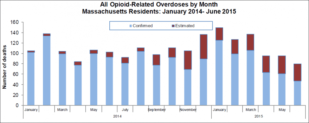 And the Baker administration isn’t sure if the final numbers for April, May and June will look much like the bars on the preliminary chart above. To get overdose death updates out more quickly, the administration is using a new model that estimates a large percentage of the deaths. The revised numbers have been on the high — not low — side for the past year, but it's not clear if that trend will continue.
