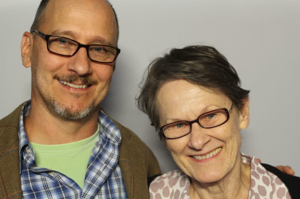Mary Anne Karia talks to her younger brother, Steven Mikulka, about Corita Kent. Karia was Kent's student, friend and her assistant in the 1960s, and Kent later came to live with Karia and Mikulka's family. Milkulka is also the prepartor/art handler at the Harvard Art Museums.