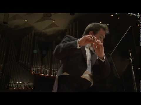 Boulez’s own music has the daring qualities of his conducting, yet unlike some musicians who compose on the side, Boulez’s own challenging music — mostly serial, without the foothold of melodic repetition and occasionally using electronics — is central to his whole enterprise. Probably his best known pieces, besides "Marteau sans maître," are his three Piano Sonatas. I’m a big fan of his elegant string quartet, and the fabulous and much-revised flute concerto with electronics “…explosante-fixe…” (a memorial to Stravinsky, quoting Stravinsky’s memorial to Debussy).