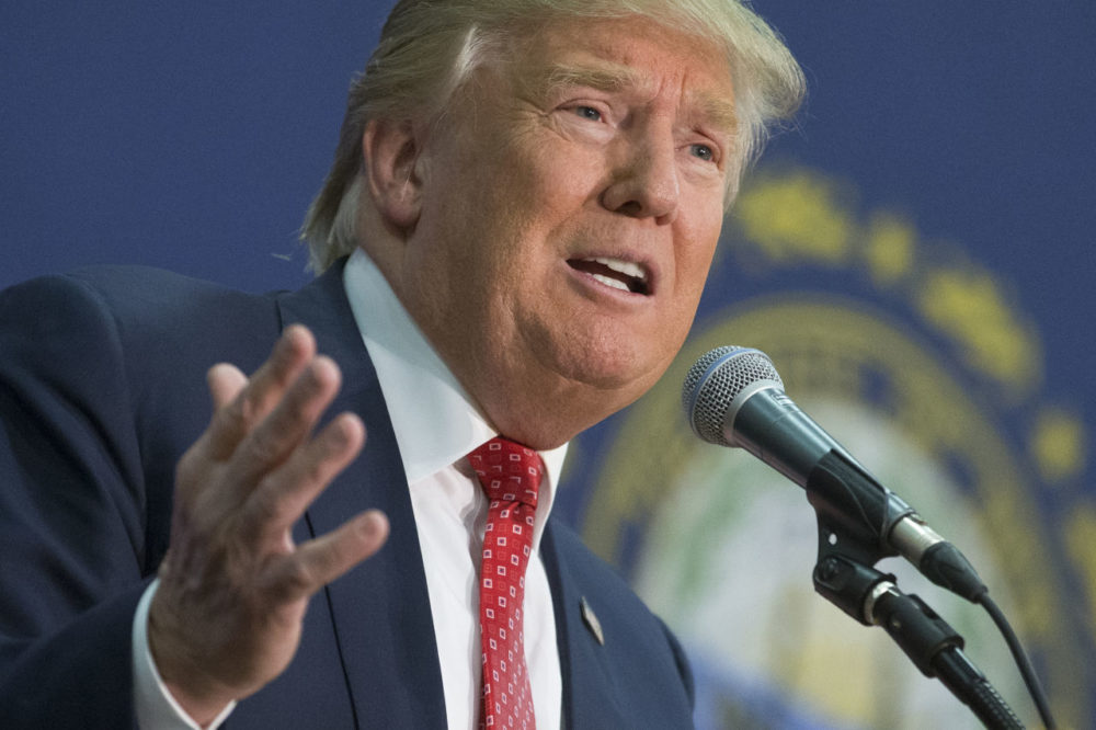 Republican presidential candidate Donald Trump speaks during a campaign stop at Concord High School on Monday in Concord, N.H. (John Minchillo/AP)
