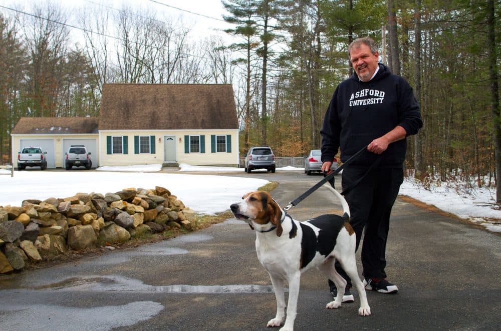 Doug Jones, a Donald Trump supporter, stands outside his house in Penacook, New Hampshire. (Hadley Green for WBUR)