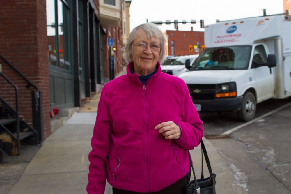 Louise Graham, a retired school teacher who has lived in New Hampshire for 40 years, said her number one issue in this election is “working towards a more fair distribution of wealth.” (Hadley Green for WBUR)