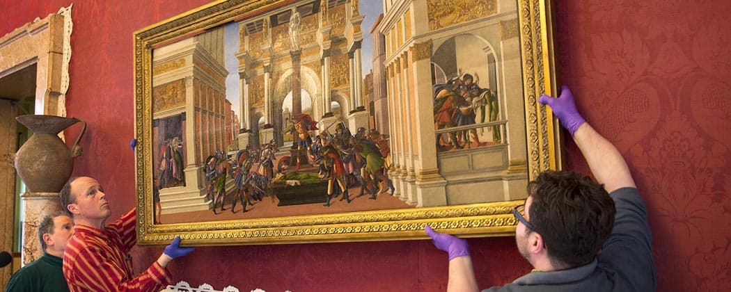 The museum's professional art handlers gently remove an eye-popping 15th century painting from its place on the wall. It’s Italian master Botticelli’s, "The Tragedy of Lucretia."