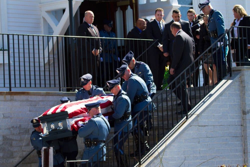 Hundreds of fellow state troopers and officers, along with Massachusetts public officials, attended the 44-year-old's funeral.
