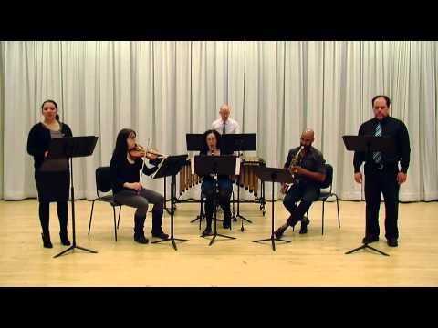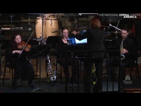 Contrasted with the simple vocal lines, the instrumental score is layered with counterpoint and evocative textures. A modest quartet interprets the score, visible behind a scrim: percussion (Mike Williams), violin (Lilit Hartunian), saxophones (Philipp A. Stäudlin) and clarinets (Amy Advocat). Lash makes the most of these forces, especially in the rich percussion part, deeply indebted to Williams’ skills.