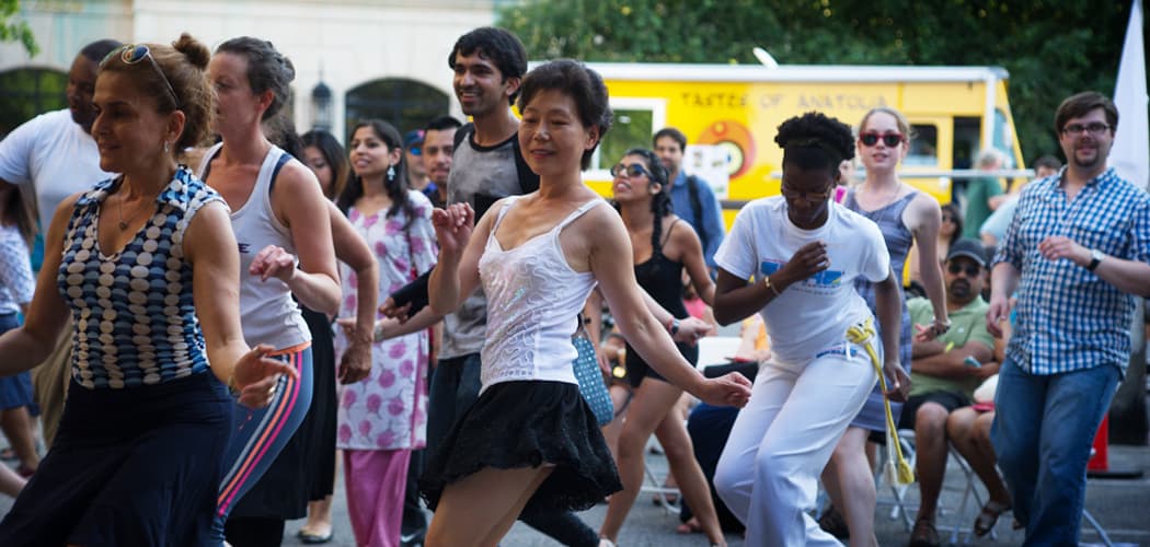 Organizers estimate upward of 15,000 people will descend on Harvard Square on Saturday to enjoy the sights and activities associated with Dance for World Community. Almost a hundred dance organizations: ballet dancers, modern dancers, belly dancers, swing dancers, capoeira dancers, flamenco, kathak, fusion, hip hop — you get the idea, every form imaginable — will activate stages set up around the square.