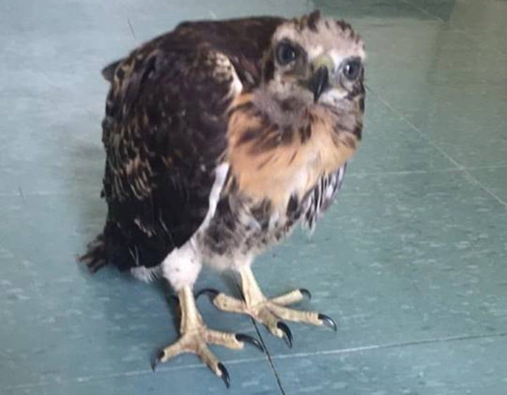 On Monday, two people stopped onto the breakdown lane on Route 125 in Andover after seeing the red-tailed male hawk in the middle of the road, State Police said in a Facebook post. The bird, which looked emaciated, appeared to have fallen out of his nest.