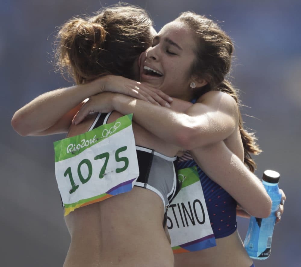 D’Agostino was knocked down with about 2,000 meters to go in the women's 5000m event after New Zealand runner Nikki Hamblin stumbled ahead of her. Instead of jumping up and immediately finishing the race, D’Agostino helped Hamblin get to her feet and encouraged her to finish.
