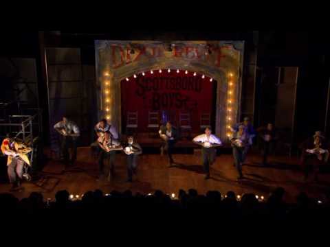 Case in point: an upbeat tap dance number in which the Scottsboro Boys tap out the gyrations of someone sizzling in the electric chair. Later, a beautiful ballad sung by the boys in multipart harmony, like a hymn about those lovely “southern Alabama days,” finds its sweet melody suddenly wrapping itself around lyrics recalling “daddy hanging” from a tree and “crosses burning” in the sky. The effect is bruising — and enraging.