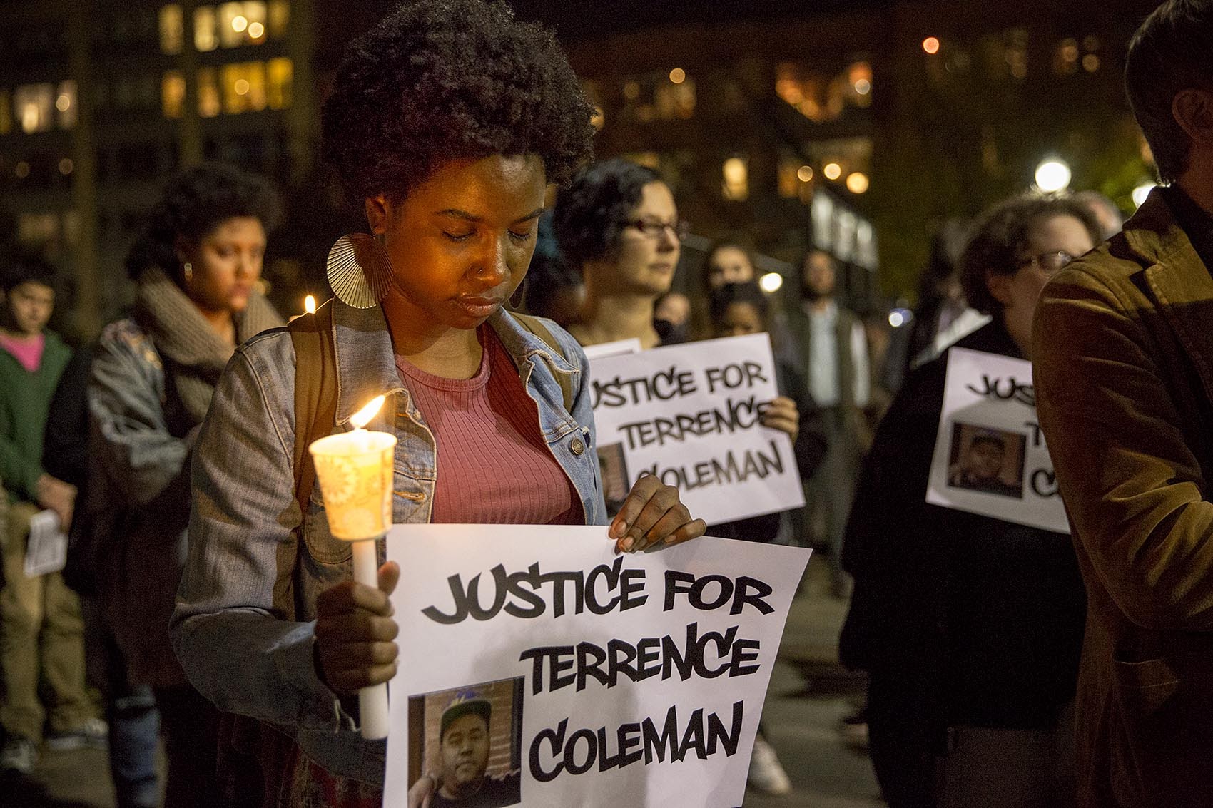 Many of the more than 100 people who turned out for a vigil on Wednesday evening in memory of 31-year-old Terrence Coleman blame the death on police leadership.
