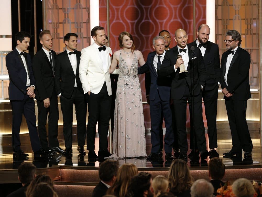 "La La Land" came in with a leading seven nominations, and won everything it was nominated for, including best film, musical or comedy. Chazelle won both best director and best screenplay. Gosling won best actor in a comedy or musical, as did Emma Stone for best actress. It also took best score (Justin Hurwitz) and best song for "City of Stars."