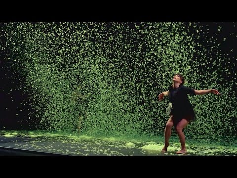 Lime-green confetti covers the ground like a light dusting of snow. Sometimes it falls from above. At other times, it’s manipulated, either thrown from the dancers’ hands or swept across the stage by their movement.