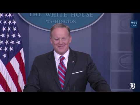 He jokingly asked Spicer whether he needed any help, drawing laughs. Spicer -- an avid Patriots fan -- responded "I think I got this. But thank you."