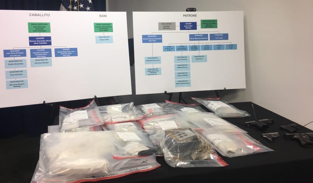 ![At a press conference Tuesday at the Moakley Courthouse, federal authorities displayed suspected fentanyl and guns they seized in an early-morning sweep of an alleged drug trafficking operation based in Lawrence. [Photo: Katie Lannan/SHNS]](https://media.wbur.org/wp/2017/05/05-30_Lawrence_evidence-1000x584.jpg)